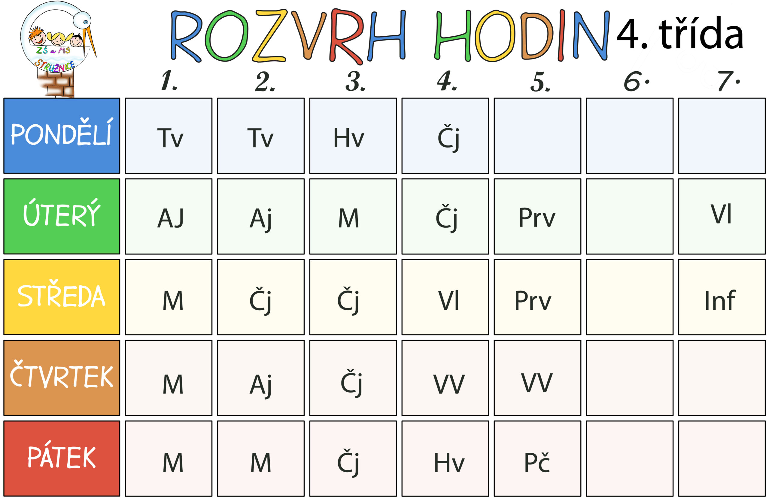 Rozvrh hodin Zvonění 08:15 – 09:00 09:10 – 09:55 10:15 – 11:00 11:10 – 11:55 12:05 – 12:50 13:20 – 14:05